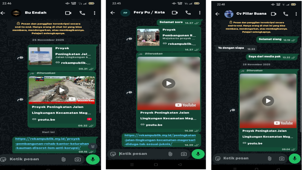 Pewarna Publik – Mojokerto. Dari pemberitaan 24 November 2025 proyek Jalan Lingkungan Kecamatan Magersari yang berjudul proyek Peningkatan Jalan Lingkungan Kecamatan Magersari Terkesan Asal, dan Terkesan diabaikan Oleh Pihak Dinas DPUPR kota Mojokerto Saat Awak media Melayangkan Pemberitaan ke pihak Dinas Sebagai informasi publik terkait perkembangan Infrastruktur namun tak ada tindakan terkesan di abaikan (10 Desember 2025).